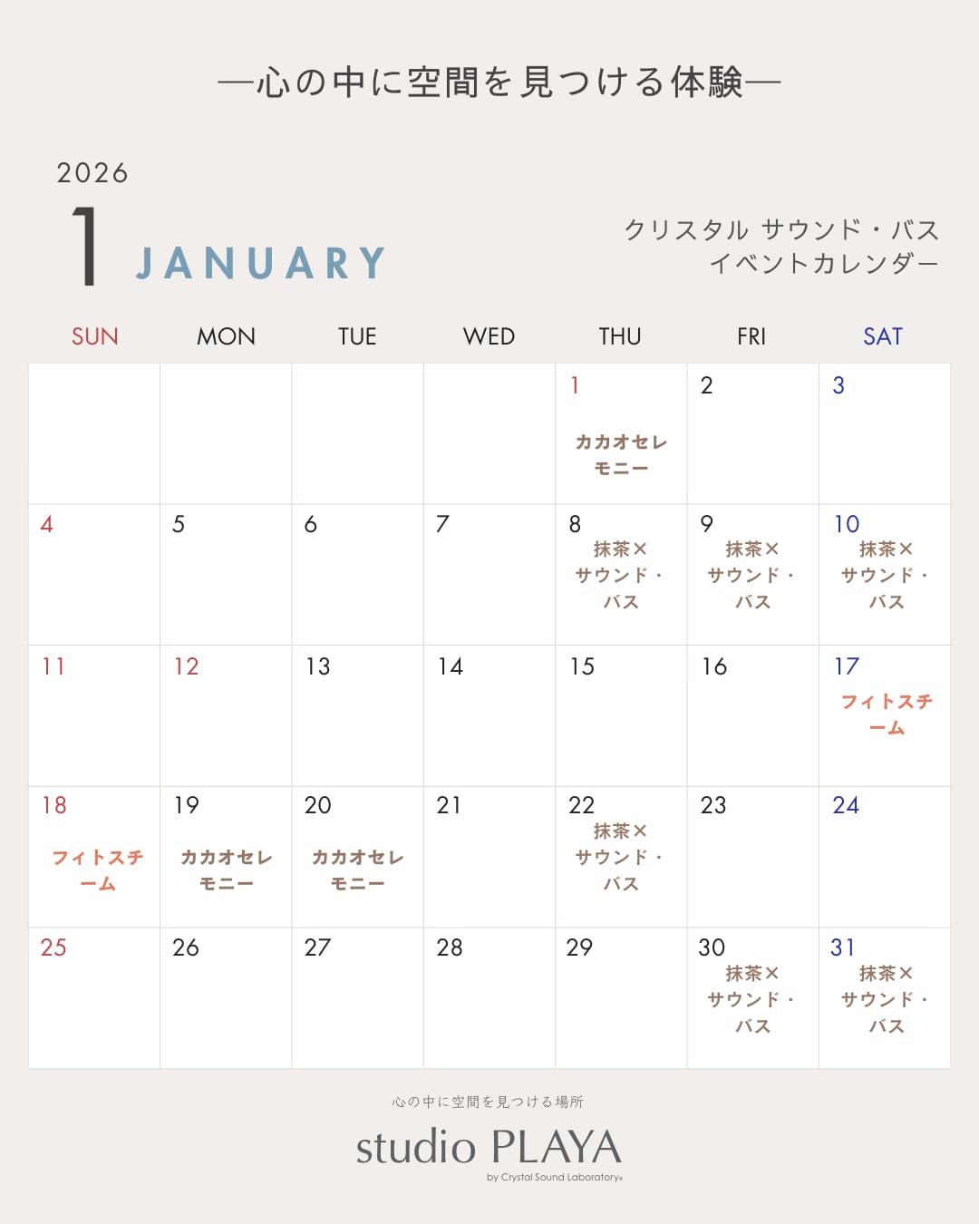 2026年1月のMagali Luhan サウンド・バスイベント スケジュールです🥣️