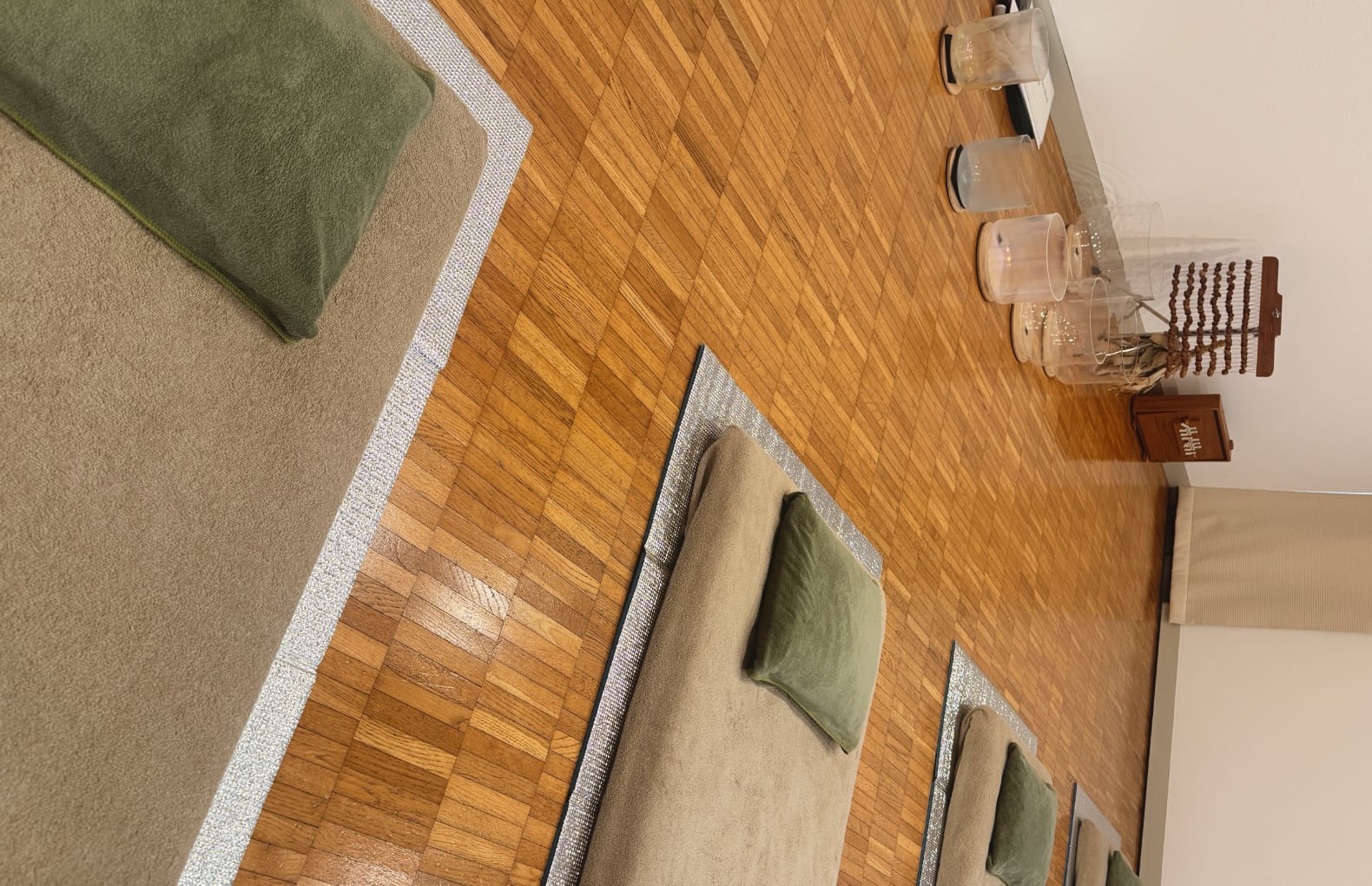 東京・浅草橋 studio PLAYAでは、サウンド・バスを快適にお過ごしいただけるよう、やわらかなお布団マットに加えて、「パイプ枕」を導入しました。