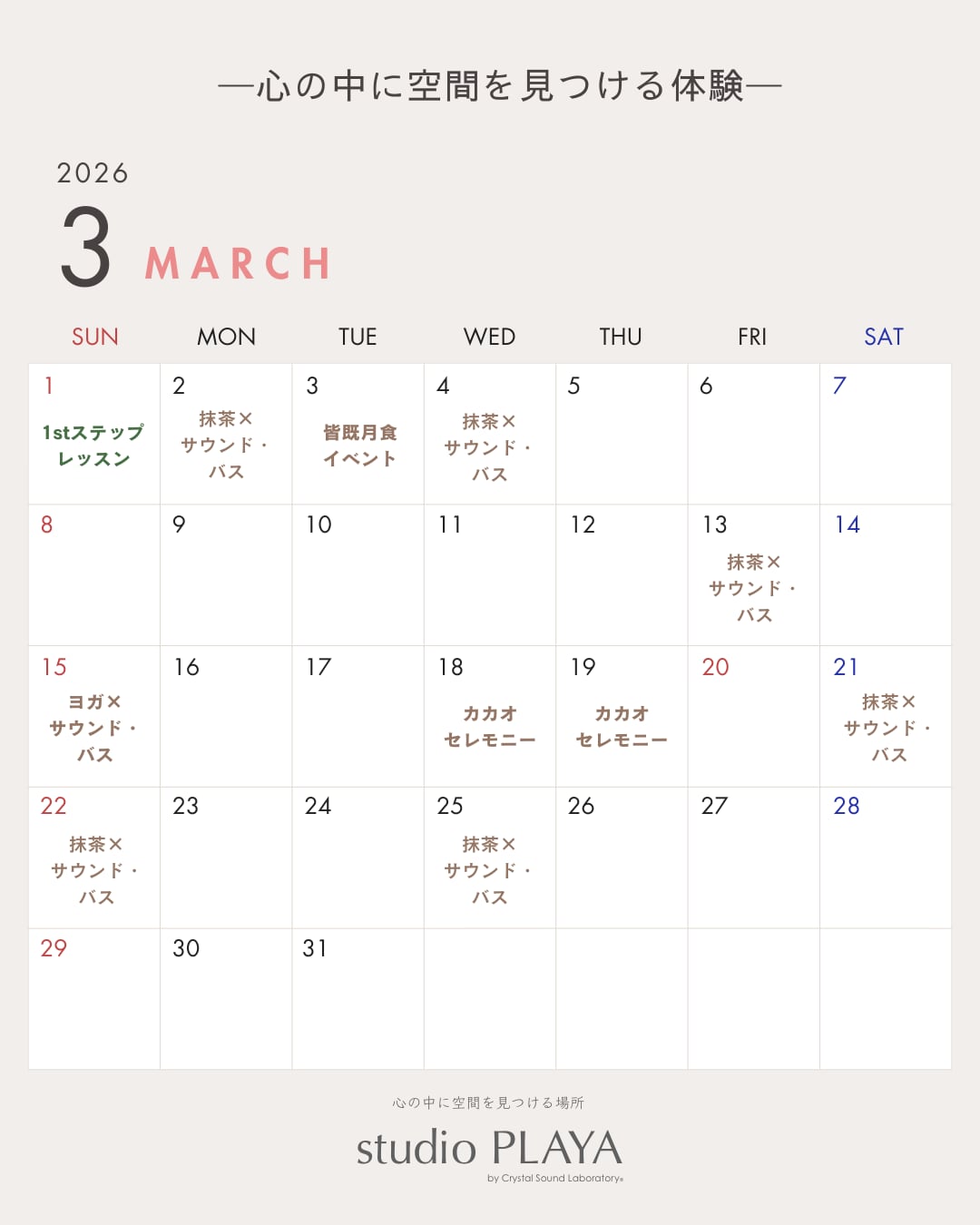 2026年3月のMagali Luhan サウンド・バスイベント スケジュールです🥣️